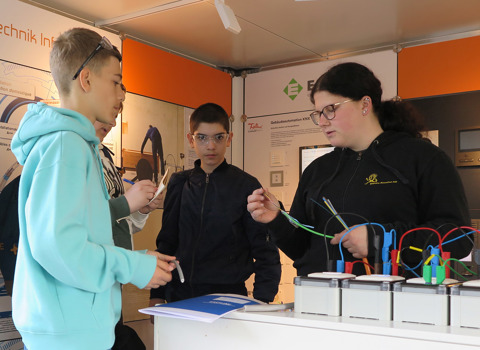 Cette année encore, nos trois membres Werder Elektro AG, Elektro Knuchel AG et Schilt Elektro AG, tous établis dans la région de Granges, ont de nouveau participé à cet important salon de la formation. Les apprentis ont accueilli les élèves sur leur lieu de travail et donné un aperçu très concret des différents métiers. Par petits groupes, les élèves ont pu travailler sur des projets et même utiliser sous surveillance des machines.
